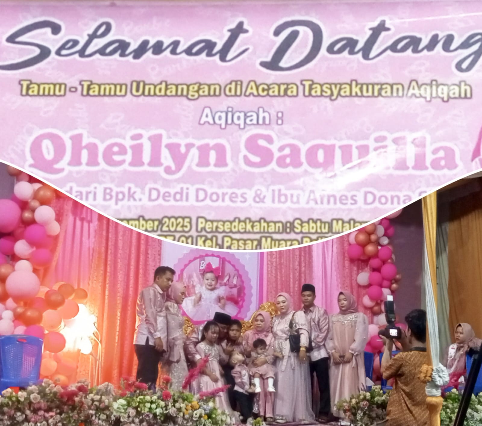 Ulasanrakyat.Com — Musi Rawas. Suasana penuh kehangatan menyelimuti acara Tasyakuran Aqiqah Qheilyn Saquilla, putri kedua pasangan Dedi Dores dan Afnes Dona Silvina, S.Pd, yang digelar Sabtu malam Minggu (22/11/2025) di RT 01 Kelurahan Pasar Muara Beliti, Kecamatan Muara Beliti, Kabupaten Musi Rawas. Acara ini juga menjadi perhatian publik lantaran Qheilyn merupakan cucu dari keluarga besar Supriadi, M.Pd, yang saat ini masih aktif menjabat sebagai Camat Muara Beliti.