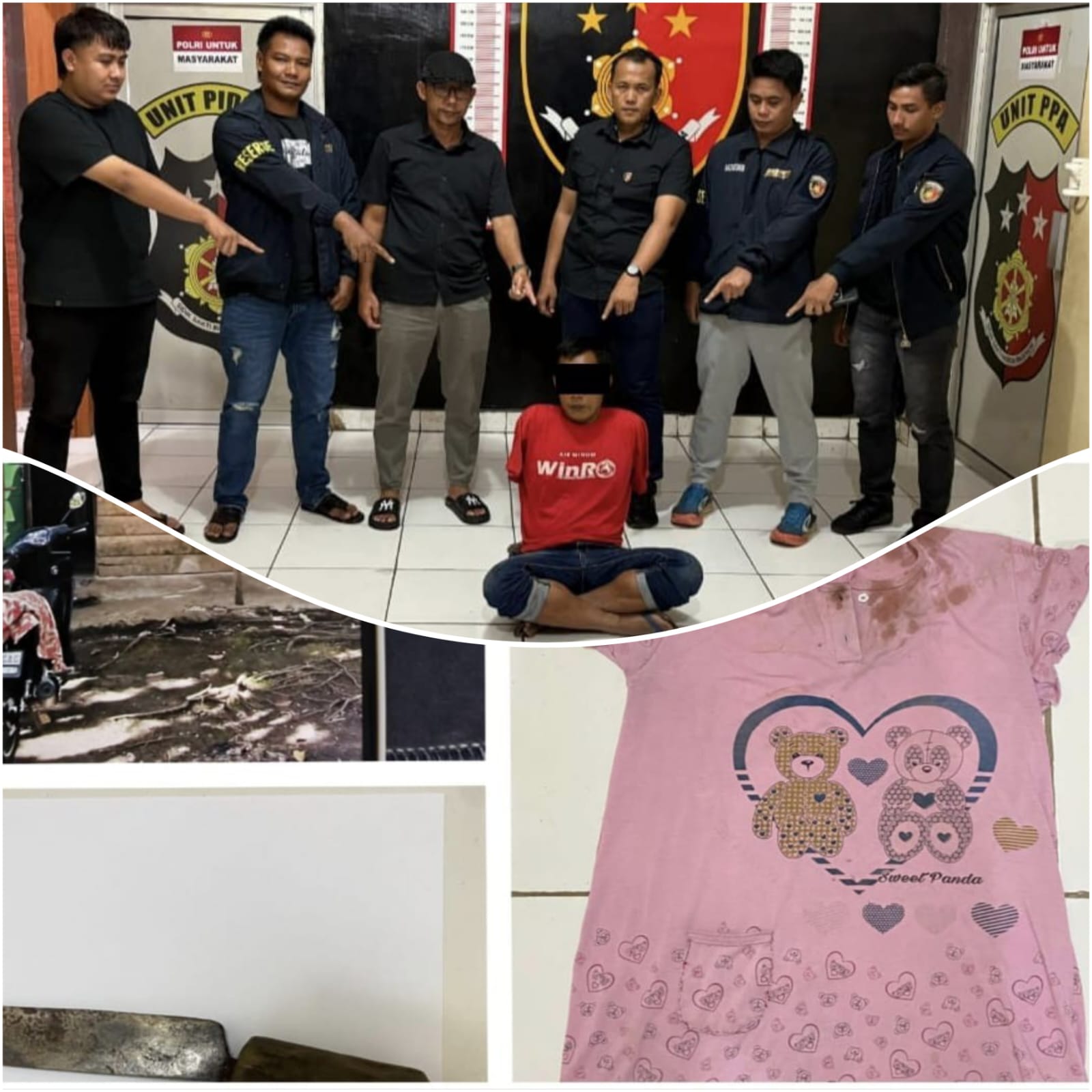 “Dari rumah tersangka anggota juga mengamankan sebilah pisau dan satu buah baju berwarna merah jambu,” jelasnya.