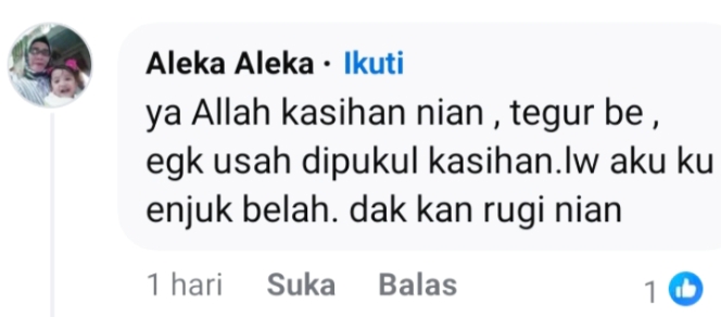 “Ya Allah kasihan banget, tegur saja tidak usah dipukul. Kalau saya, akan saya kasih saja. Tidak akan merugikan kita,” tulisnya.