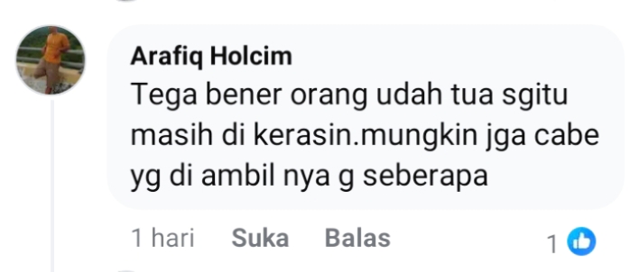 “Tega benar, orang sudah tua masih dikerasin. Mungkin juga cabai yang diambil tidak seberapa,” ungkapnya.