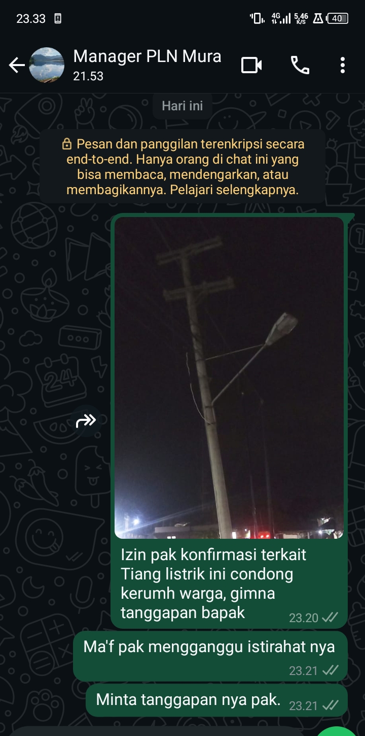 “Kalau sampai tiang itu roboh dan memakan korban, siapa yang bertanggung jawab? Waktu rumah warga terbakar pun, tidak ada asuransi atau bantuan dari PLN,” tegas BR.