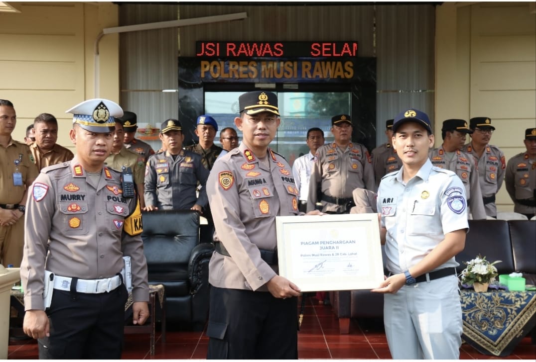 Piagam tersebut diterima langsung oleh, Kapolres Musi Rawas (Mura), AKBP Agung Adhitya Prananta SH, SIK, MH, didampingi, Kasat Lantas, AKP Muriyanto SH, MH, yang diberikan oleh diberikan Pimpinan Jasa Raharja Mura I.